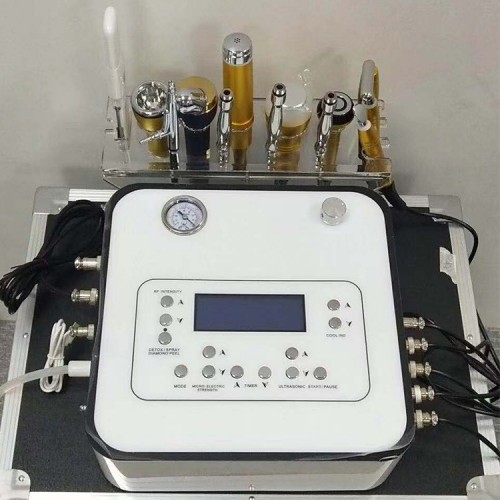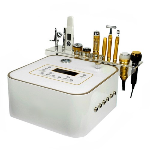 Daugiafunkcis veido priežiūros aparatas su 10 funkcijų: deimantinė dermabrazija, deguonies terapija, elektroporacija (mezoterapija), radijo dažnis, šalčio plaktukas, galvanika akims ir veidui, ultragarsas, ultragarsinė mentelė ir vakuumas veidui.