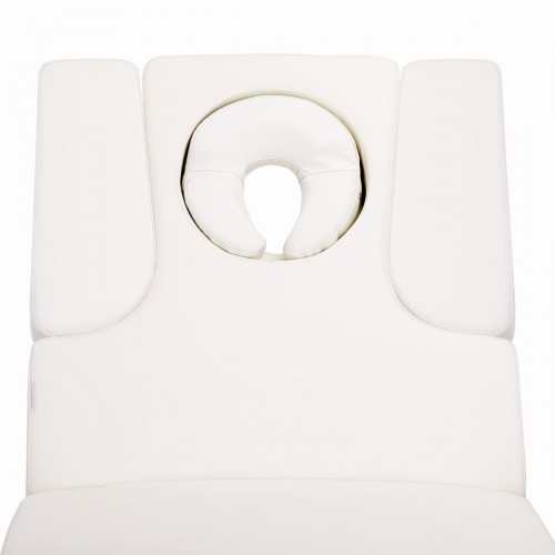 Platus (76 cm) masažinis stalas su storu, šildomu ir labai patogiu čiužiniu.